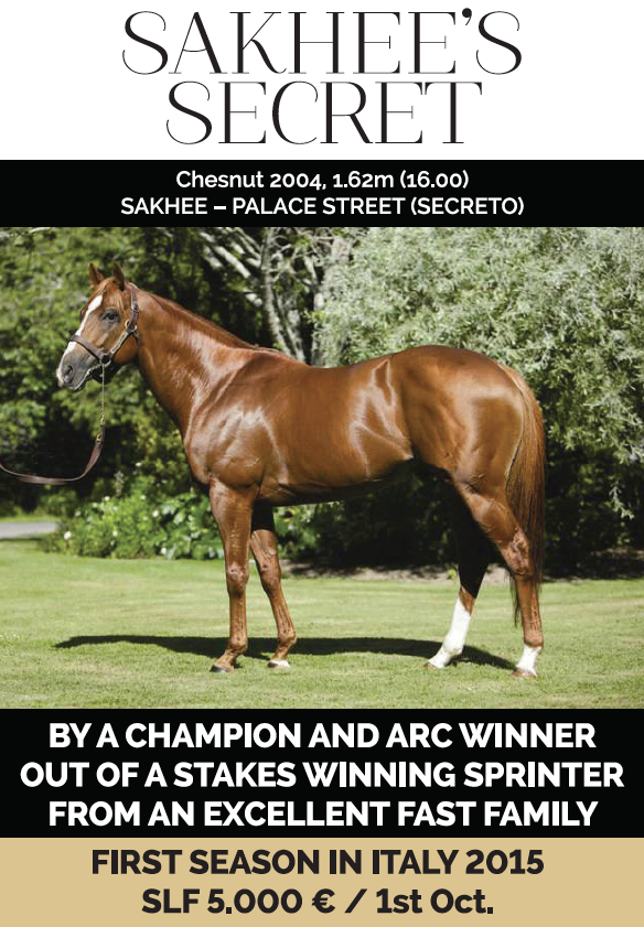 Ci risponde Francesco: «Indubbiamente la scelta è caduta su Sakhee’s Secret perché qui da noi sono ricercati stalloni precoci e veloci, la mentalità italiana è meno rivolta alla ricerca di un cavallo classico»